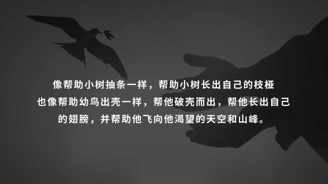 大家就会发现,当我们用青春叛逆期这个词去界定一个少年,或者说我们青少年他成长的某一个特定阶段的时候,它已经先入为主地界定,这是一种错误。青春叛逆期真的是一种错误吗?在这里我想给大家介绍一本书,德国作家黑塞他写的一本书,可能很多朋友都看过,就是《德米安:彷徨少年时》。它里面就讲了一个少年成长的故事。这个少年名叫辛克莱,成长在一个教养比较好的家庭,父母很慈祥,他也努力做符合父母要求的好孩子,童年就像童话一样平静、安详、温暖。但是我们成长过的人都知道,这只是童年时期的一个短暂的现象,因为孩子一定会长大。于是开始,我有一句话写在了PPT里面,那就是——跟复杂的世界,早晚一天我们要迎面相逢。所以少年辛克莱后来就开始遭遇到复杂的世界里面的一些始料未及的东西,他会遇到一些糟糕的人,也会遇到一些糟糕的事儿,也会在群体当中受到不公平的待遇,比如说他甚至遭受到了霸凌和欺辱。辛克莱像很多孩子一样,他是非常地恐慌的,那意味着他的童年时期就结束了,所以辛克莱说了一句话——我的童年已经变成了废墟。童年和少年最大的区别是什么?我觉得最大的一个区别就在于童年时期,我们跟父母的世界的重叠度特别高,我们很难走出父母的视野,而且父母对于一个孩子的管控是非常有效的,因为我们孩子的活动面比较窄。但所谓少年就意味着这个孩子渐渐走出父母的视野,很多在他的人生阶段里面出现的新的困难、新的问题,有可能慢慢脱离了父母管控的一个位置。孩子走进了一个新的阶段,这个时候一个孩子会非常地害怕,所以他迫切需要父母的帮助和辅导。但是非常可惜,辛克莱的父母没能够及时接到孩子传递来的这样的一种无声的求助信号,像所有的父母犯的低级错误一样,我们会有一个本能,我们希望我们的孩子永远停留在童年时代。所以很多父母把自己已经长大的孩子当作摇篮里的孩子,觉得你只要继续保持童年时期的简单、纯真、听话和服从,你就是安全的。但显然不是这样,所以辛克莱和父母的关系开始出现了动摇,他开始觉得自己的父母不像自己想象的那么有用,甚至他们都没能发现他在新的人生阶段遇到的人生问题。而父母给他的那些帮助,给他的那些关心,既没有针对性,也没有什么用处。于是我们就看到了一个我们比较熟悉的情景,那就是辛克莱不再信任自己的父母了,他的秘密不再告诉他们,因为说了也没用。而父母的那些没有针对性的关心,对他而言就变成了令人厌烦的无限重复的唠叨。而父母对此完全不知道,还在强迫自己的孩子,你要听话,你要服从。孩子就会被推向父母的反面,你让我简单我偏要复杂,你让我纯真我就要混沌,你让我听话我偏要尖锐。于是我们会看到辛克莱,他原来是个干干净净的孩子,他故意穿得邋里邋遢。原来他是个听话的孩子,他开始酗酒,开始打架,用这些尖锐的行为引起自己父母的注意,也表达自己对于现实的一个不满。而他的父母开始苦苦哀求他,你不要这样,你要做好孩子。不起作用,于是他的父母又开始威胁他,我们要把你送进少管所。辛克莱冷笑着无动于衷。我们最熟悉的那个状态就出现了,这就叫青春叛逆。所以到这个时候,很多家长会感到非常悲哀,非常无助,束手无策,觉得完了,青春叛逆期来了。可是今天我要提出的问题是,青春叛逆期真的是我们人生成长当中的一场灾难吗?还是说它是自我成长的契机呢?我想要回答这个问题,我们需要看一看青春叛逆期的底层逻辑。一个孩子他为什么会出现这些情况呢?其实说白了就是一句话,他想表达一个信息,我想得到帮助,我想应对更复杂的一个人生的处境,我需要长出一些独立的思考的能力,甚至想做出一些自己的选择。这能是一件坏事吗?我们都知道一个孩子他不能够学会走路很危险,他不能学会说话他的人生会很困难。那我问大家一个问题,一个人他没有独立思考判断和分析的能力,他的人生不是更艰难吗?所以这就是我们看青春叛逆期青少年提出的需求,这个需求背后真实的逻辑是什么,是我们自我意识萌发、自我成长的最早的一步。所以这个时候聪明的有智慧的父母会接住这个信息,他们会做充分的准备,观察好自己孩子的个人特点,我的孩子喜欢什么,擅长什么,然后再去观察成长以后的孩子他的处境是什么。他遇到了什么问题,遇到了什么困难,他应该往哪个方向发展,不能是由我来作出决定,而是根据我对孩子的分析判断和了解,跟他共同制定出一份我们解决应对新的成长阶段的成长方案。这就像帮助小树抽条一样,帮助小树长出自己的枝丫;也像帮助幼鸟出壳一样,帮它破壳而出,帮它长出自己的翅膀。有一本书它的名字叫《你当像鸟飞往你的山》,如果一对父母能够有这样的格局,那就是他做到了两件伟大的事情:他就能够有效地利用一个孩子所谓的带引号的“青春叛逆期”背后的成长契机,让自己的孩子顺利实现人生当中最重要的成长。所以我们再来看这两个词,我可以有一个基本的结论——叛逆未必是一件坏事。因为叛逆就像一张纸牌,我们在这正面看到的是他不再服从了、不再听话了,但他的另一面是自我开始成长了。不叛逆的孩子,