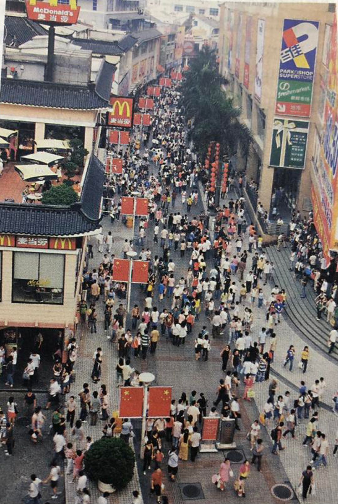 在香港上学的时候,我经常偷偷回广州,也许是有了些物理的距离,我开始重新审视广州的日常生活。我发现在步行街里面,我经常混沌地不知身处什么年份。街上有时在放邓丽君,有时跳到一些神曲,有时又突然跳到谭咏麟。