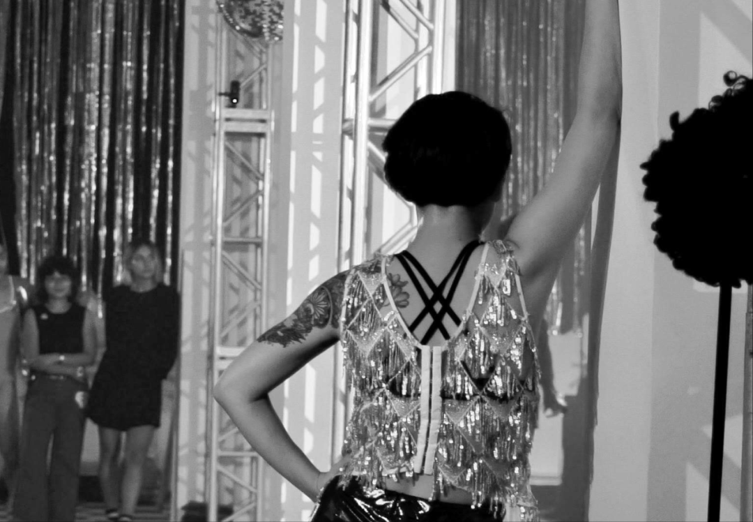 于是在《来来舞厅》里,典典就穿上足尖鞋跳了一段白毛女的舞蹈选段,旁边一个男舞者用一个迪斯科球一直照耀着她。