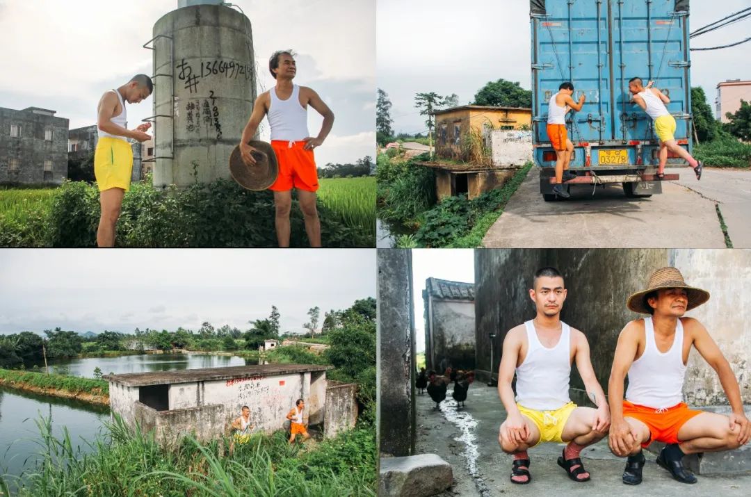有一天,我把我爸带到阳江的某一条村拍了一组照片。我说,爸,你能不能翩翩起舞,我就在后面跟着你。从照片里可以看到,他的翩翩起舞其实就是打武术、爬树、爬卡车。