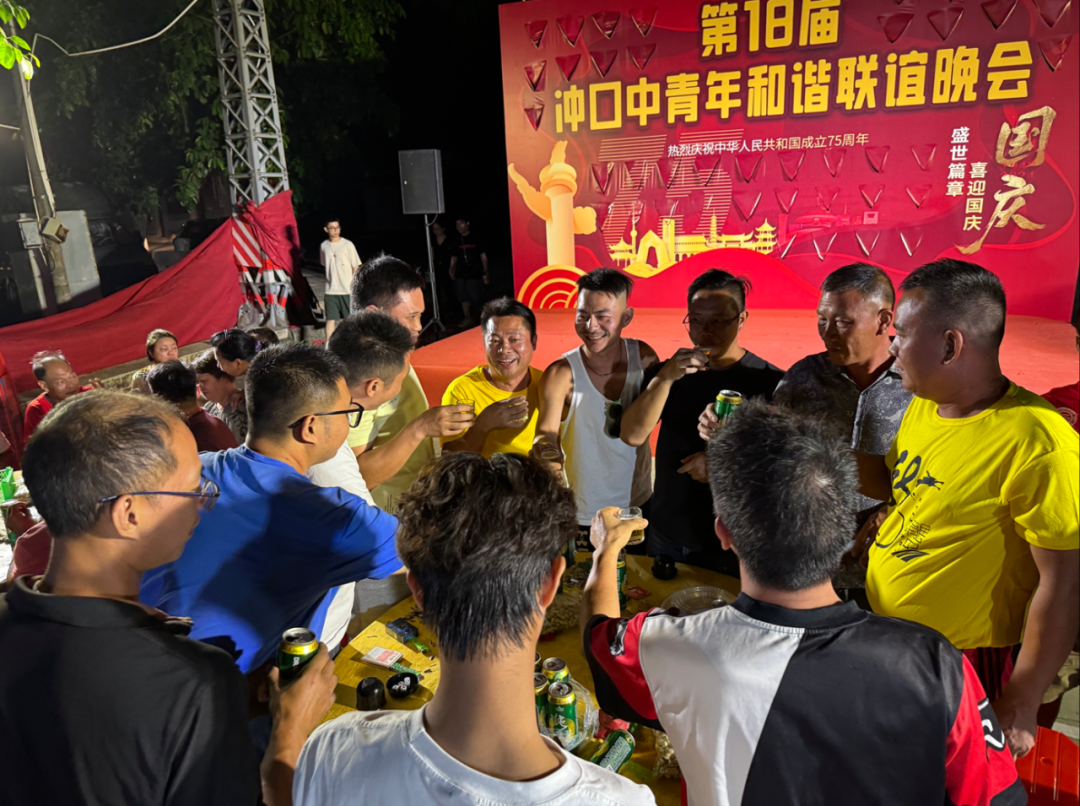 另外一张是我在那个周末回到左滩村,跟我们的村长、跟村里大哥们参加他们的中青年和谐联谊晚会。