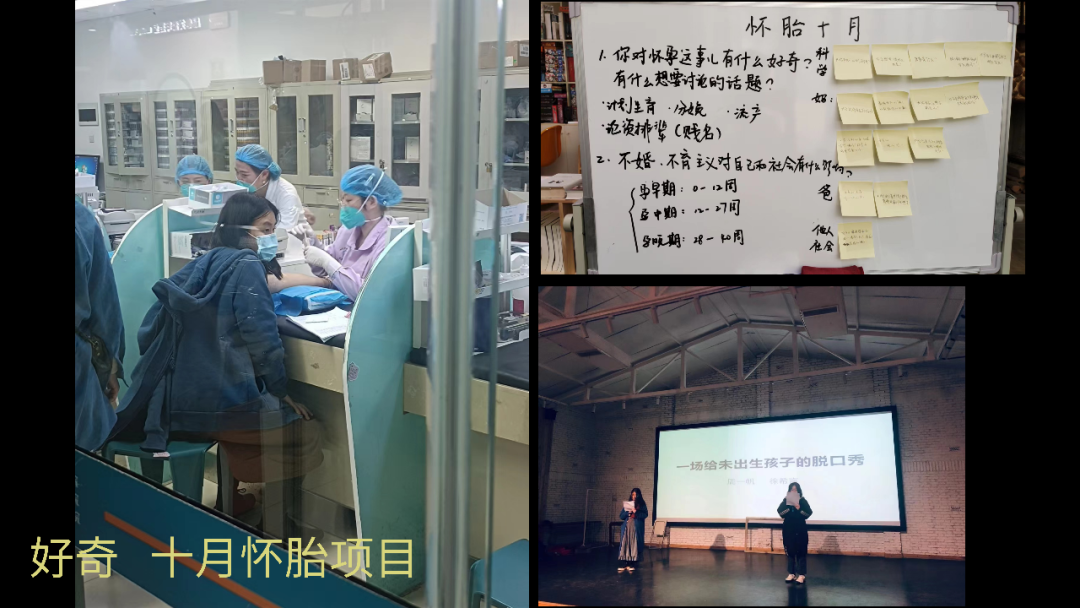 我们瓶子老师的人生重要阶段基本上都被我们改造成了不同的学习项目。结婚后没多久,她就怀孕了。于是我们又发起了这么一个项目,叫做十月怀胎。同学们陪伴着瓶子老师,经历了每一次的产检,研究生育相关的基本常识,最后用一场脱口秀,为这个项目做了总结。