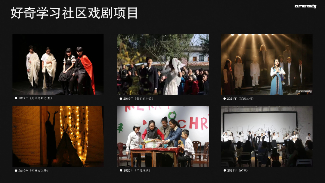 于是她对电影就产生了浓厚的兴趣,但没过多久她就在视觉艺术里面找到了最喜欢的东西——戏剧舞台剧,然后她更加深入地参与我们好奇学习社区每一次的戏剧排练。