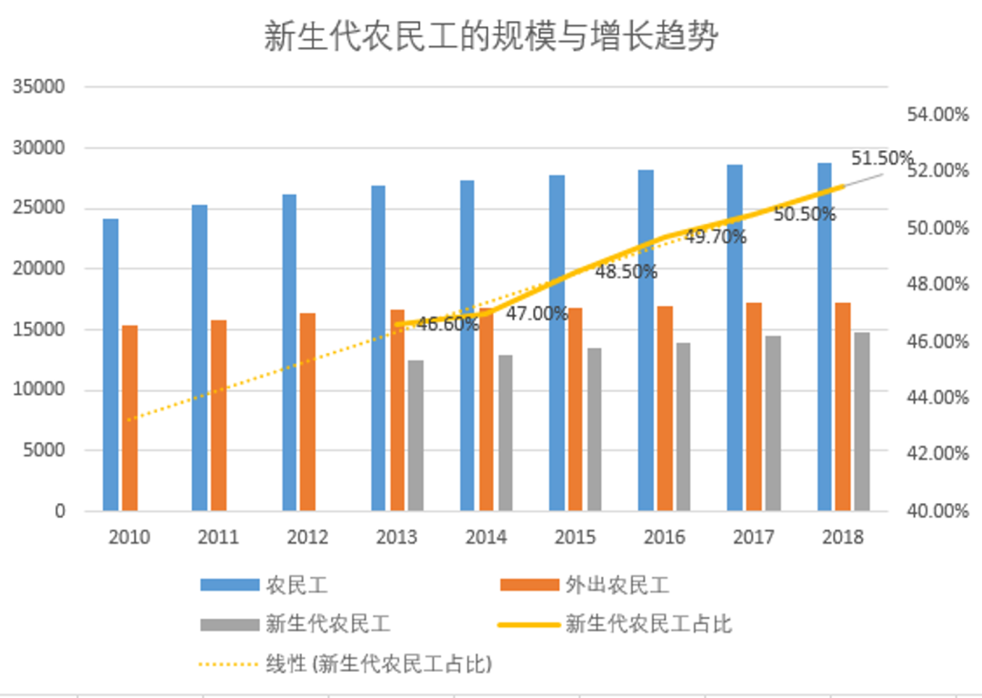 随着中国人口结构的变化,农民工群体内部也在经历代际更替。50、60、70年代出生的老一代农民工逐渐老去,部分人正离开城市;而80、90、00后出生的新生代农民工已成为农民工的绝对主力。