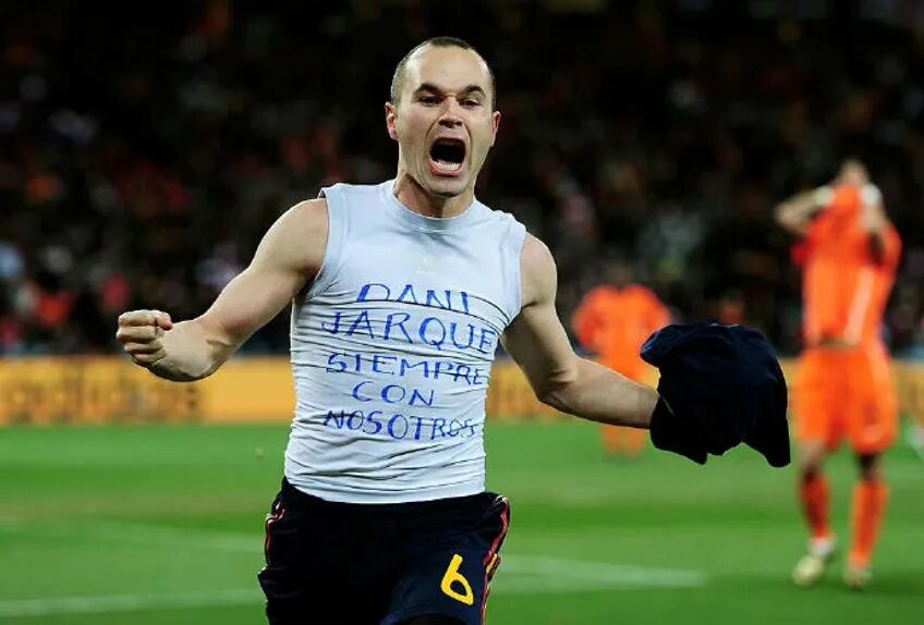 2009年,达尼·哈尔克在26岁的时候因为心脏病突发意外离世。一年之后,伊涅斯塔在世界杯决赛上,选择用这样的方式纪念自己的好朋友。