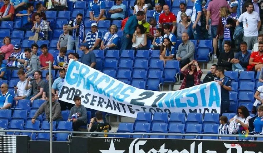 当伊涅斯塔做出这样的举动之后,接下来他造访西班牙人的主场时,会发生什么?西班牙人的球迷会打出横幅,上面写着:感谢你,伊涅斯塔。首先我们是朋友。什么叫“首先我们是朋友”?因为伊涅斯塔长期效力的巴塞罗那和达尼·哈尔克曾经效力的西班牙人是同城死敌。