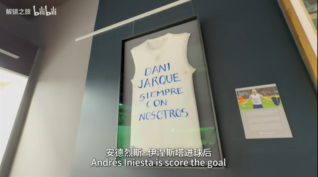 在他人生如此重要的高光时刻,他脱掉了自己的球衣,露出了里边的背心,上面的字是:DANI·JARQUE SIEMPRE CON NOSOTROS。意思是:达尼·哈尔克永远和我们在一起。