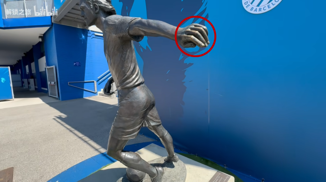 同样的一座雕像位于西班牙人俱乐部的青训基地里。很多在那训练的小孩,也就是达尼·哈尔克的晚辈,在路过他的雕像时会跟他击个拳。所以你看他的左手磨得格外光滑。