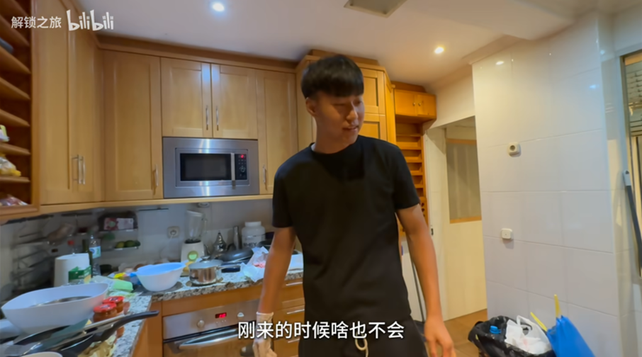 与此同时,我们看小杜住得好像不错,但这是个三个人合租的房子。室友是他的非洲队友和他在西班牙踢第五级别联赛的发小。日常的做饭、生活管理都要自己来。