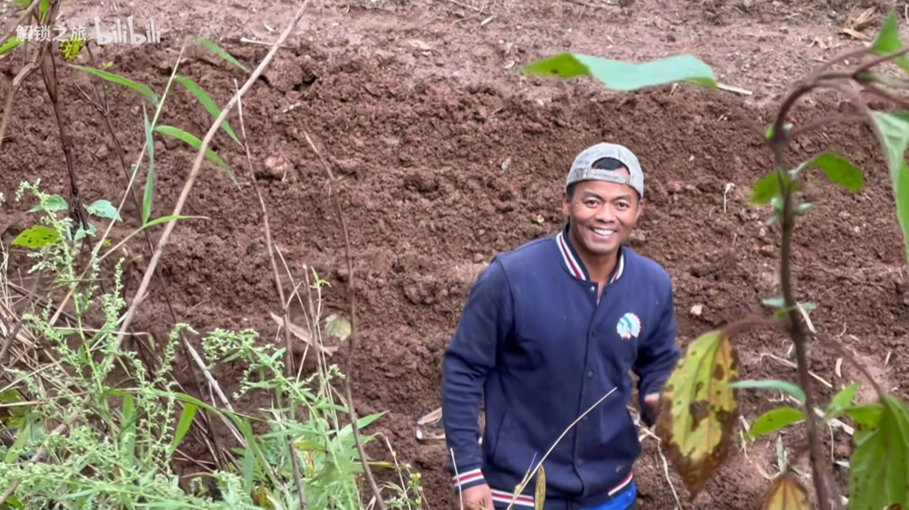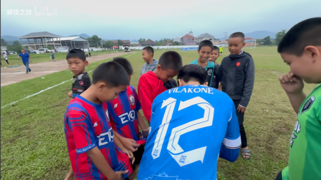 我看见一个小伙,穿着裤衩、拖鞋,蹲在地上搓着球裤。他是现役的老挝国脚。