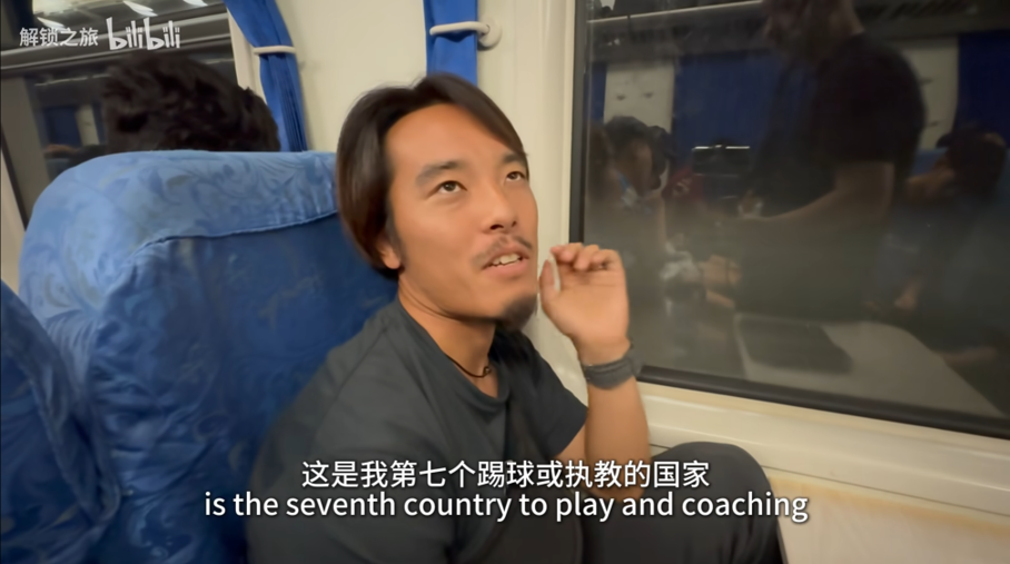 在返回万象的绿皮火车上,我找到了一个叫Tomi的哥们,全名叫作富泽拓海。我问他为什么来老挝踢比赛?他说得很直接:因为我没有能力在日本职业联赛踢上比赛,但我的目标是成为一个职业球员。