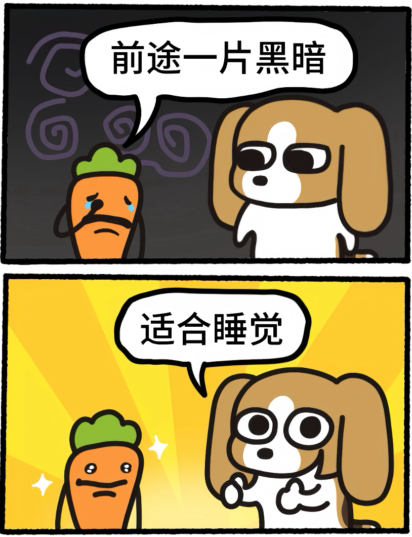 我个人这么想:如果各位有什么心灵上或者精神上的困境的时候,不要总去否定和怀疑自己,我们要学会以哲学的方式向社会甩锅。