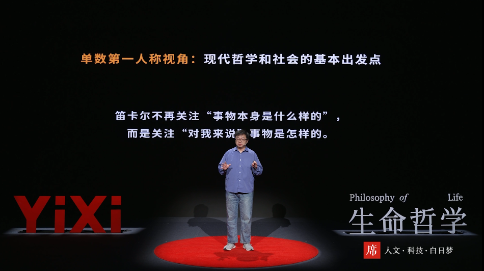 过去,人们在上帝、在世界、在天地中去看“我”,而从笛卡尔起,我们开始从“我”的角度去看世界。这是一个根本的视角转变。这就是主体性哲学和近现代哲学的基本出发点,也是整个现代社会的一个基本前提。