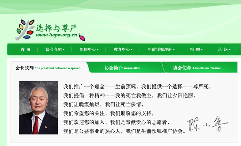 它其实和老年人的性需求一点关系都没有,它是北京生前预嘱推广协会办的网站。点进网站里头,你就能看到这样一行字: