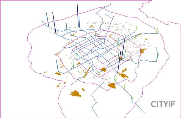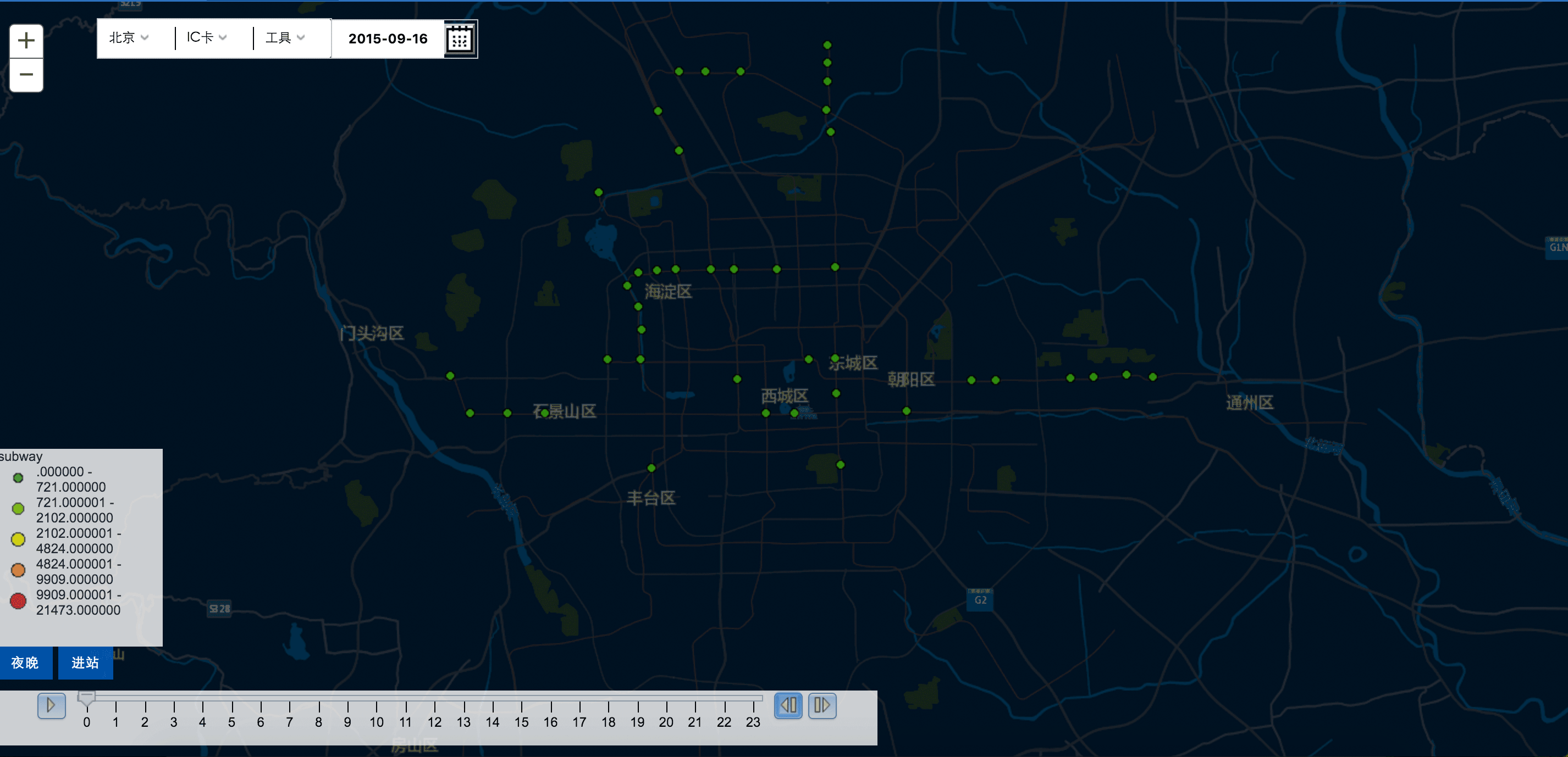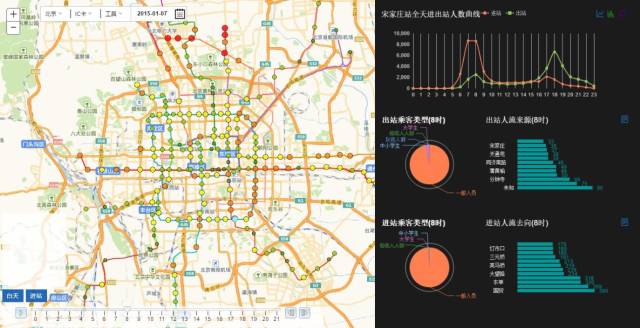 我们可以利用这个数据看到北京每一个地铁站每一个小时的进站客流和出站客流,可以知道每一个站点客流的来源、客流的去向。我们还可以基于地铁的刷卡记录,去进一步分析不同的市民怎么使用城市空间。