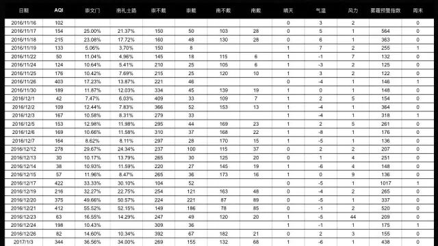 我们又发现了第二个很重要的因素:政府的雾霾预警。在污染天,政府会发布黄色、橙色和红色的雾霾预警,北京的雾霾预警会通过短信。发到我们的手机上。同时政府发布了预警之后会引起一波舆情的变化,互联网上也会产生一些舆情的变化。所以我除了去采集每一天的空气质量指标以及每一天的能见度以外,还会去采集关于雾霾预警的舆情指数。