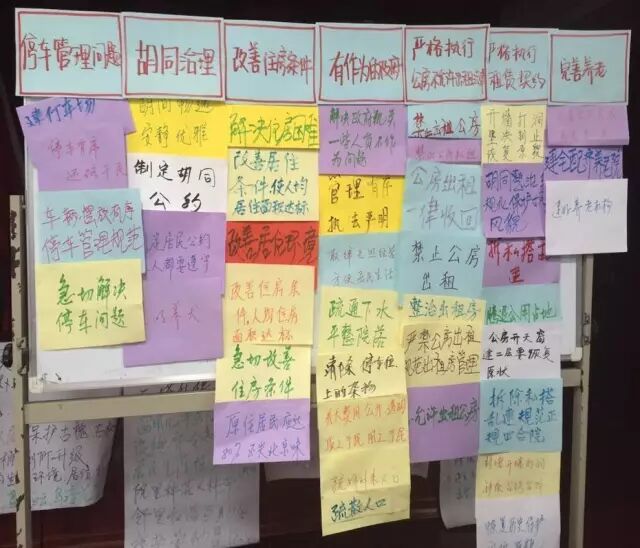 这是在北京东四的一个社区,这是北京的一个胡同区域。我们把社区里的老街坊都叫到一起,让他们给我们写了这样一些小纸条,让他们告诉我们东四的这个社区到底存在哪些问题。