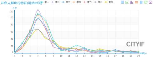 我们坐地铁,从A站上车、B站下车,把地铁作为交通工具。而灰色人群把地铁作为工作场所,所以他们在A站上车、在A站下车。同时由于每一次刷卡都会产生成本,他们会选择在地铁站里面待的时间特别长。而对于职业的乞丐,职业的卖艺的、发小广告的人,他们不会一个月只出现一天,他们会在一个月里面反复出现这种行为。所以我们开始研究这些人的行为模式,他们几点钟上班、几点钟下班。