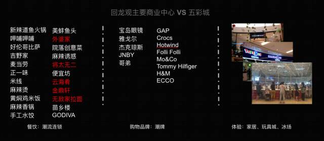 五彩城有这样一些餐饮品牌,回龙观没有;有这样一些消费品牌,回龙观没有;有这样一些体验业态,回龙观没有。