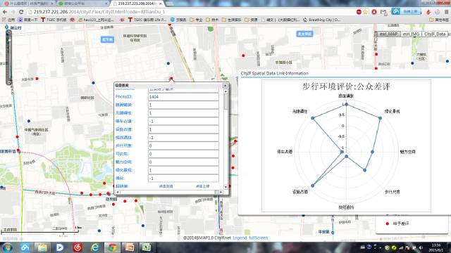 这个地图是关于自行车的地图。市民会在上面填问卷,告诉我们北京哪里好骑车哪里不好骑车。