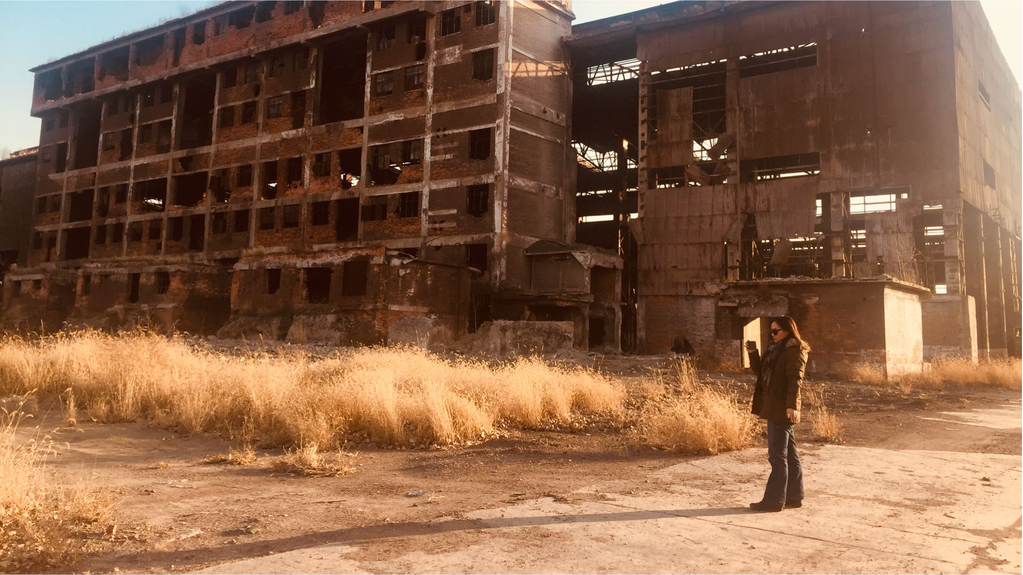 这是其中一个工厂的饭堂,大概空置了十几年,窗框什么都被拿掉了,剩下的就是纯粹的这种建造物跟自然之间的很美丽的关系。